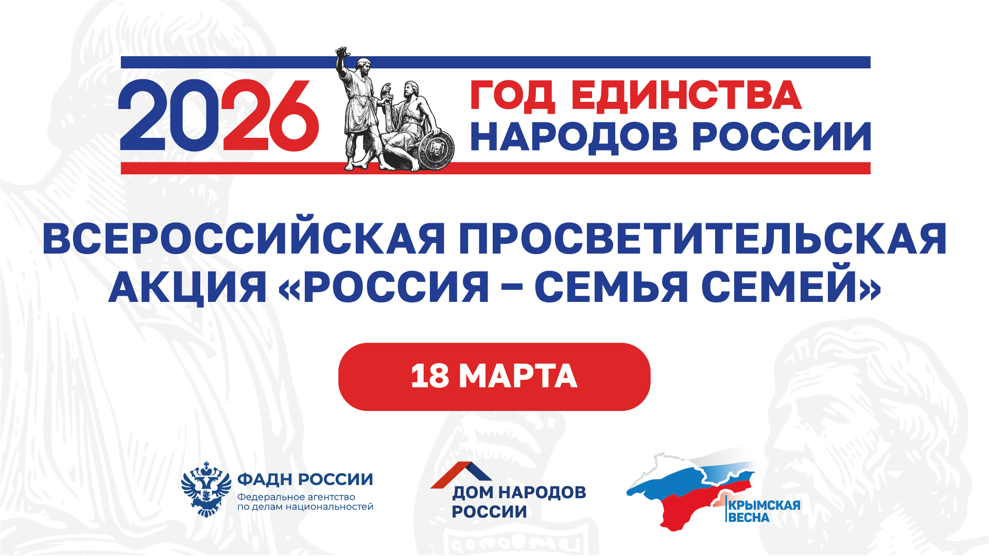 18 марта, в День воссоединения Крыма с Россией, в нашей стране пройдёт Всероссийская просветительская акция «Россия - семья семей».